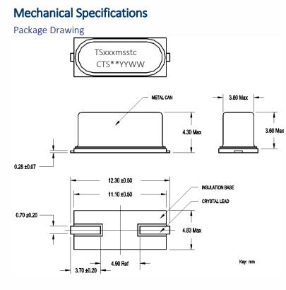 CTS晶振ATSSMTS,TS250F23CET無源晶體 尺寸圖