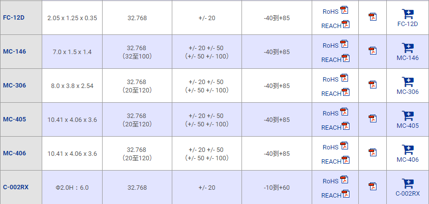 Quartz Crystal石英晶振選型列表