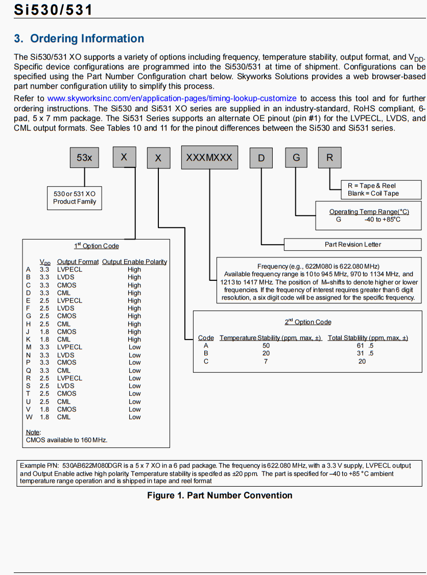 530BA156M250DG | Skyworks晶振 | Si530 | XO | 156.25 MHz | LVDS | 3.3V | ±50ppm |