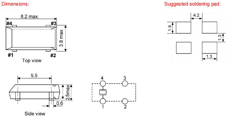 • 晶振尺寸:8.0*3.8*2.5mm