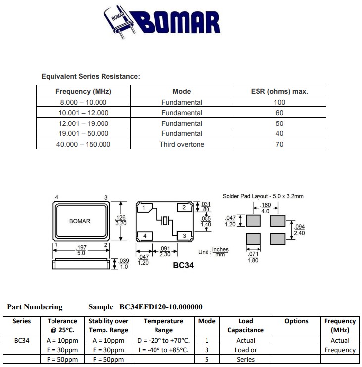 Bomar晶振,BC34EFI120-24.000000,6G模塊晶振規格表