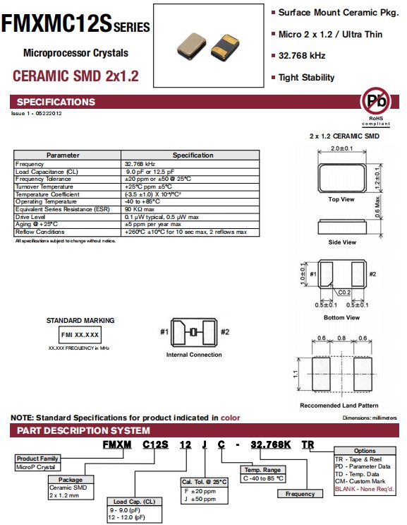 FMI晶振公司,FMXMC12S12JC-32.768K TR二腳晶振,6G衛(wèi)星晶振