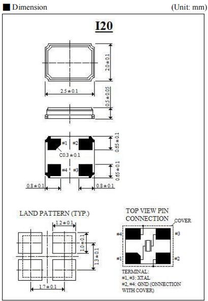 ITTI晶振,I20石英晶振,I2010-50.000-18,6G移動無線電晶振尺寸圖