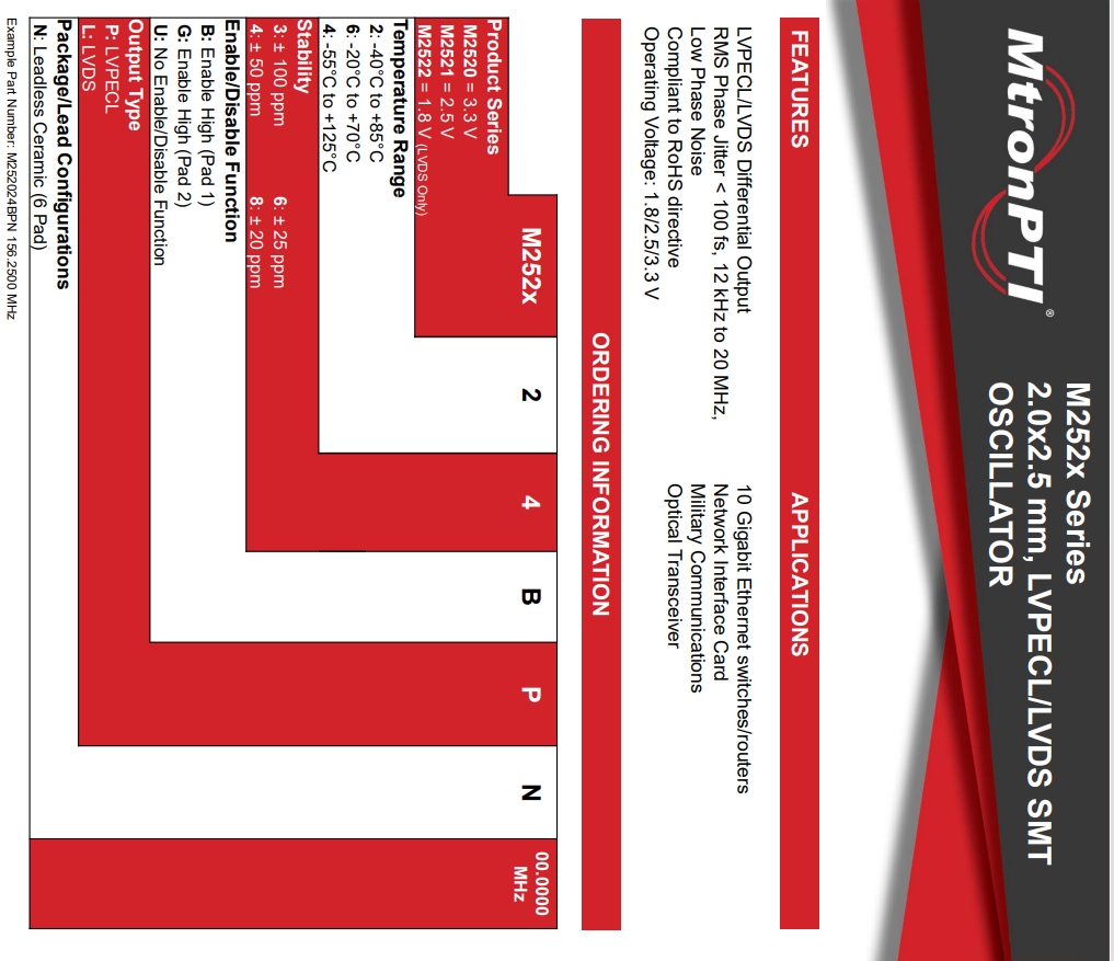 M2520S07 156.25|M252x|±20 ppm|MTRONPTI晶振