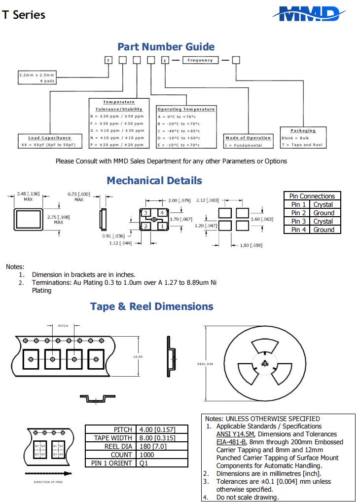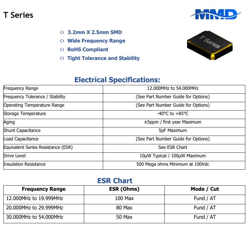 Mmdcomp晶振,T16NC1-32.000MHZ-T,6G無線模塊晶振特點: