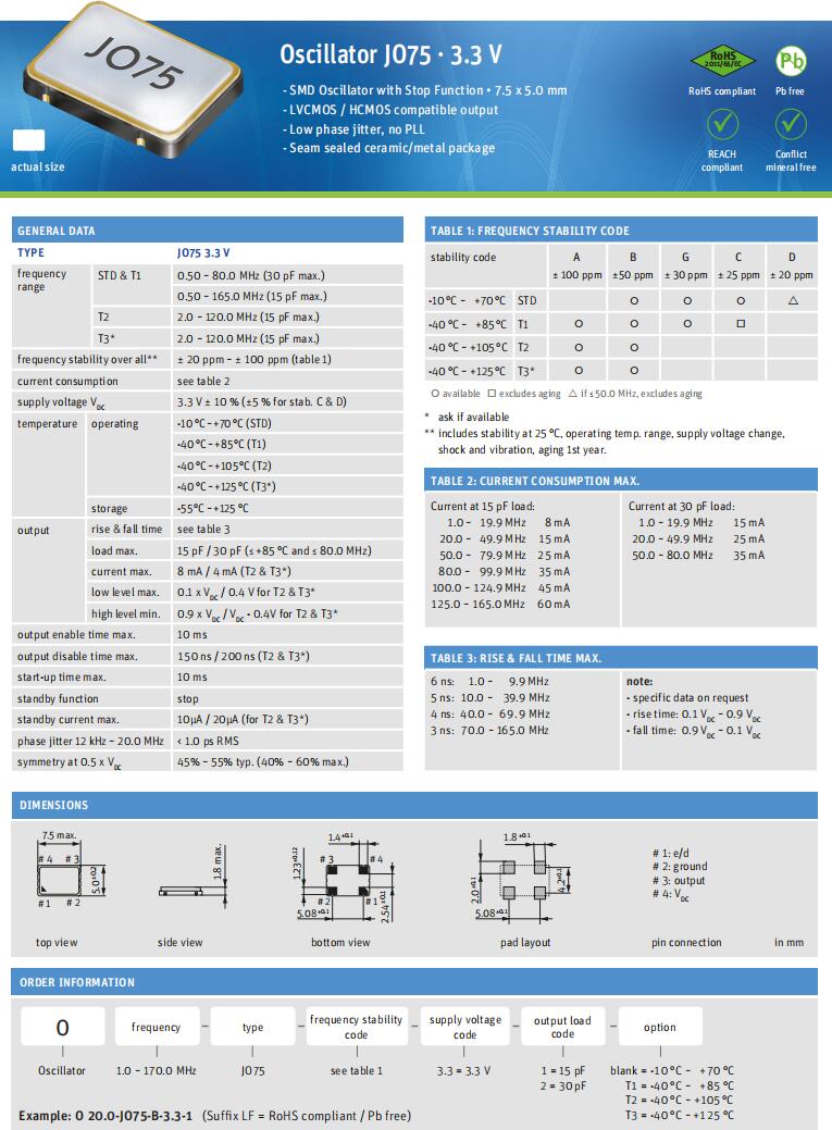| Q 20.0-JXS22-10-10/10-FU-WA-LF | Jauch晶振 | JXS22-WA | 20MHz | ±10ppm | 10pF | -20°C ~ 70°C |