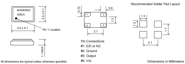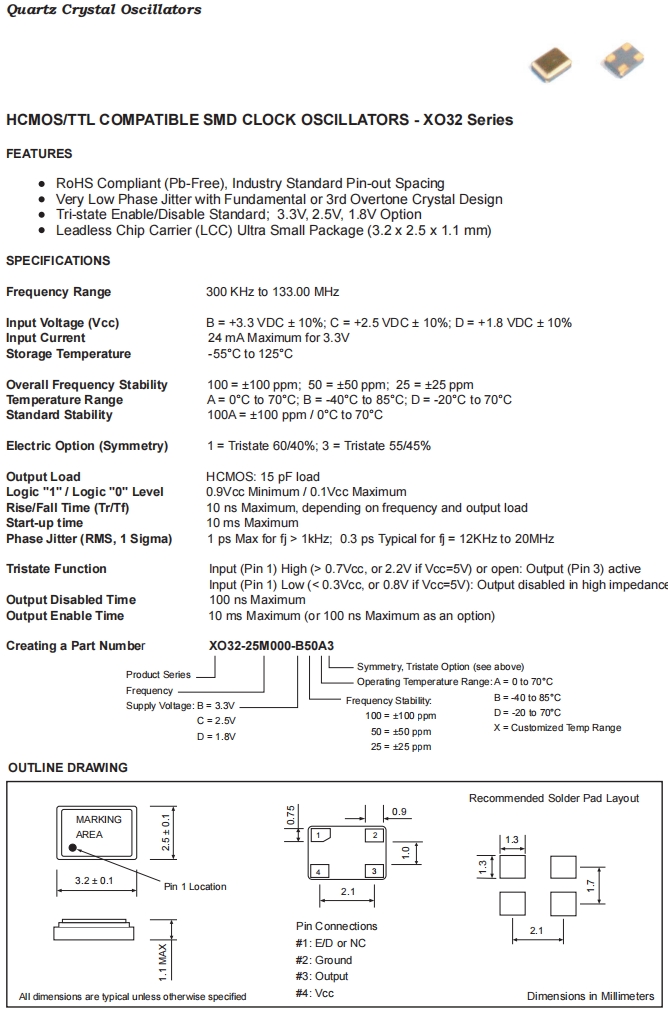 • 晶振尺寸:3.2*2.5*1.1mm