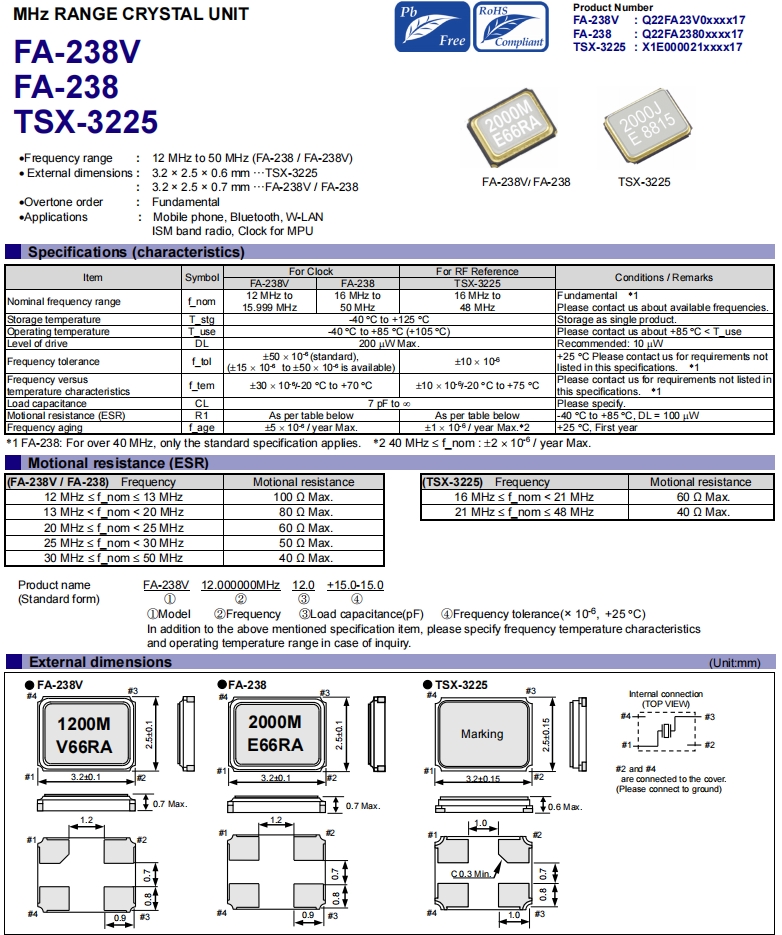 頻率范圍:12MHz至50MHz(FA-238/FA-238V)