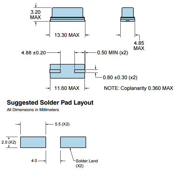 (1)使用AT-切割晶體和表面聲波(SAW)諧振器/SAW聲表面濾波器的產品,可以通過超聲波進行清洗。但是,在某些條件下, 晶體特性可能會受到影響,而且內部線路可能受到損壞。確保已事先檢查系統的適用性。