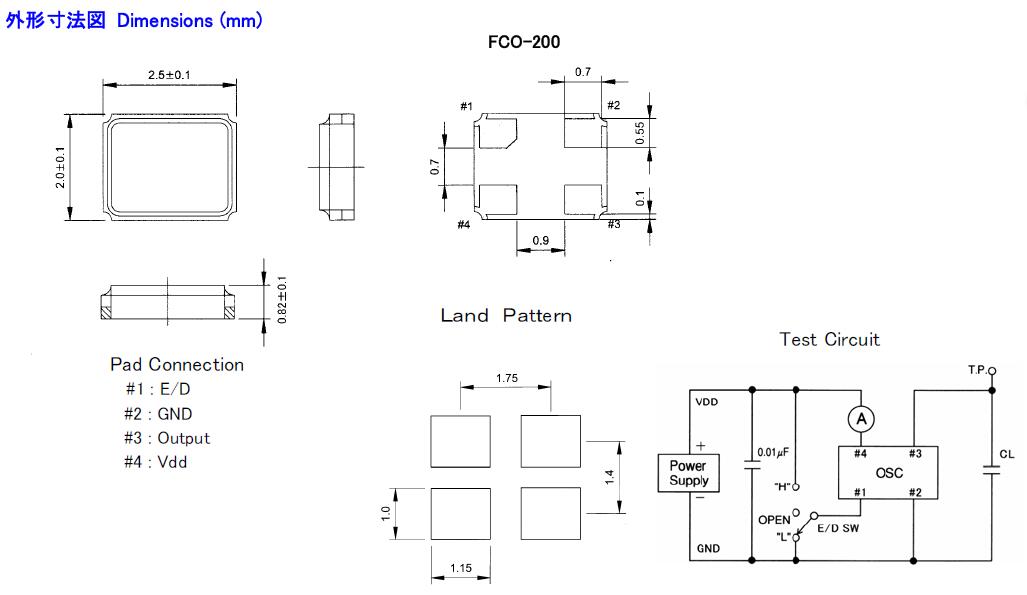 | Fujicom晶振規格 | 單位 | FCO-200晶振 | 石英晶振基本條件 |