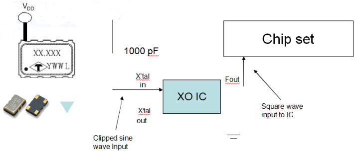 •The output from TCXO needs to be connected to the crystal input pin on the oscillator IC and the output pin from the oscillator IC shall be connected to the input pin on the chip set.