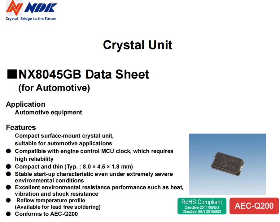 | NX8045GB-16.000M-STD-CSF-1 | NDK晶振 | NX8045GB | 16MHz | ±150ppm |