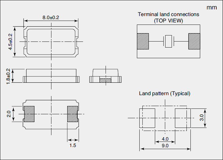 緊湊和薄(Typ: 8.0×4.5×1.8 mm)