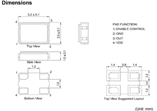 XO 7X20080001 20MHZ TXC 3225mm尺寸圖 包裝圖