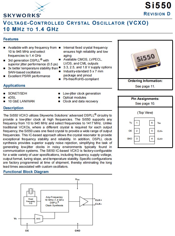 應用于:超聲波,x數字用戶線,10 GbE局域網/WAN,低抖動時鐘生成,光學模塊,時鐘和數據恢復