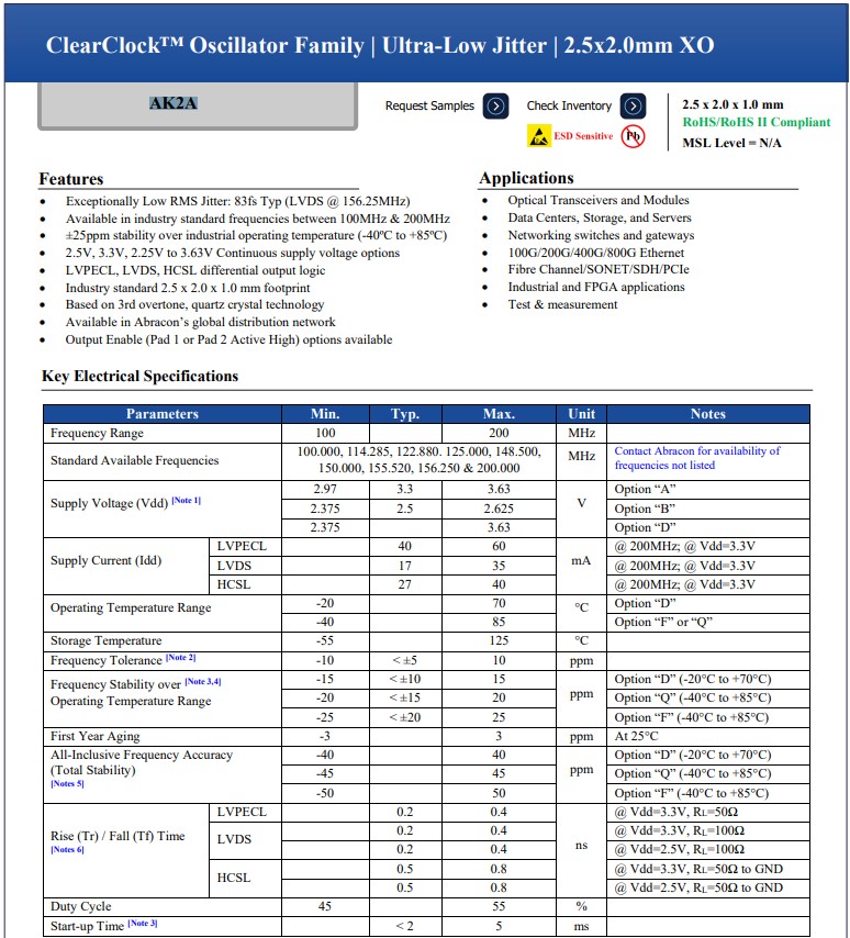 低抖動(dòng)振蕩器AK2APAF1-156.2500T3適用于6G無(wú)線晶振應(yīng)用