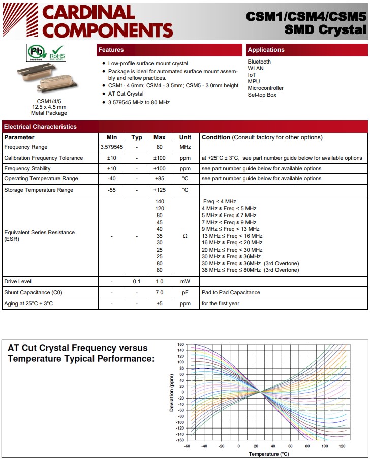 | CSM1Z-A5B2C3-40-14.31818D18 | Cardinal晶振 | CSM1 | MHz Crystal | 14.31818MHz |