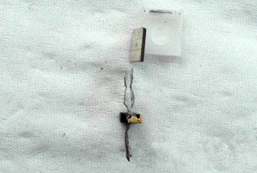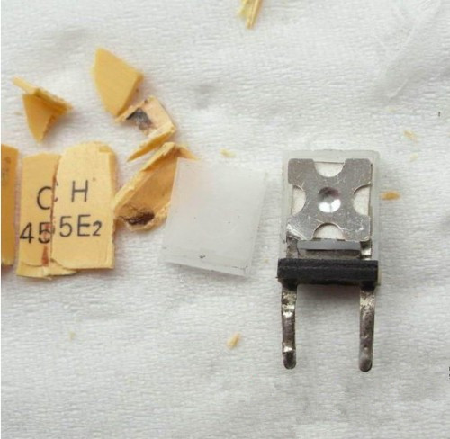 最后指出,“晶振”最早本是“石英晶體諧振器’’的簡稱,后來研制出了“壓電陶瓷諧振器",習慣上也稱為晶振。為了有所區別,便稱為石英晶振和陶瓷晶振。現在市場上仍有部分地區稱陶瓷晶振為壓電陶瓷諧振器,有的叫陶瓷諧振器。類似CRB455E這樣的陶瓷晶振,很多客戶都提出相同的問題,這么大的東西,又便宜,里面裝的都是什么東西呀?下面是一支上錫之后拆下來的陶瓷晶振,給他了進行了一次解剖,讓大家更深刻的了解有關陶瓷晶振的內部結構。