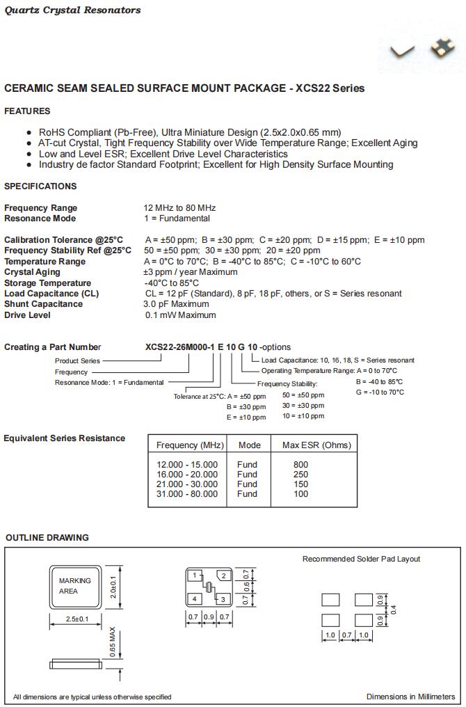 XCS22-26M000-1E10B18|26MHz|18pF|Fortiming Crystal規格表