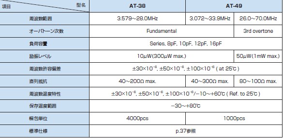 KDS晶振 AT-38規格