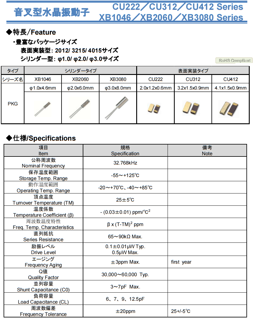 日本納卡6G路由器晶振,CU222 32.768KHz二腳晶振,日本NAKA晶振公司,CU222晶振,高品質晶振,2012晶振,6G路由器晶振,6G無線網晶振,小尺寸晶振,日本進口晶振,6G通訊設備晶振,二腳晶振,石英晶振,貼片晶振,無源晶振,32.768KHz晶振,豐富的包裝尺寸,表面安裝類型:2012/ 3215/ 4015尺寸,圓柱型:φ1.0/ φ2.0/ φ3.0尺寸