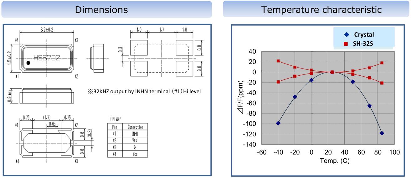 精工晶振,精工振蕩器,SH-32S晶振,是精工晶振公司新出的一款32.768K振蕩器.一直以來精工晶振都僅僅只是做32.768K系列無源晶振,SC-32S晶振尺寸為3.2*1.5封裝晶振.SC-20S晶振尺寸為2.0*1.2封裝,SSP-T7-F 32.768K晶振則與愛普生MC-146晶振是同款產品,備受廣大客戶喜用.