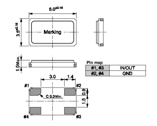 TSX-6035晶振,石英諧振器,進口晶體尺寸