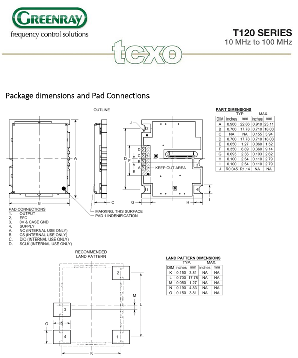 美國格林雷晶振Greenray之T120 TCXO產品剖析